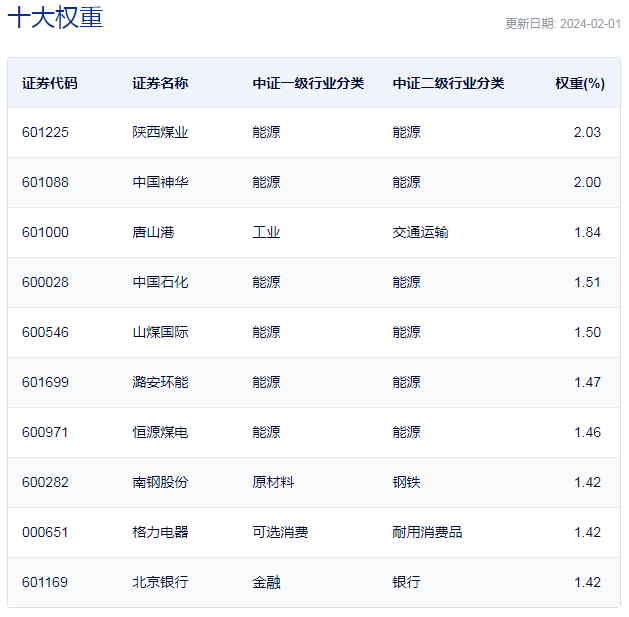 中证国有企业红利指数重仓股