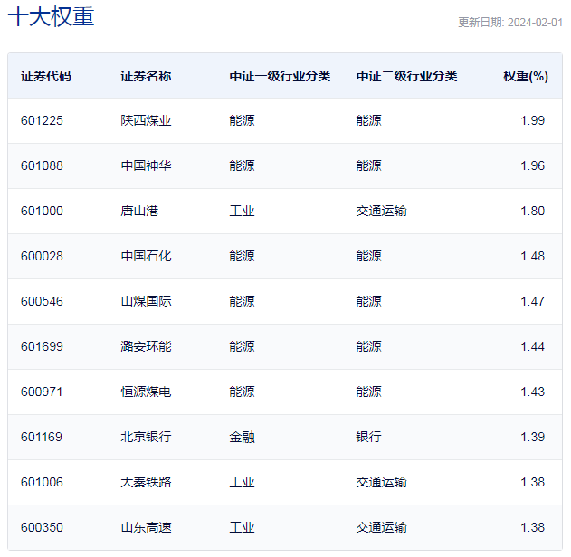 中证红利低波动指数重仓股